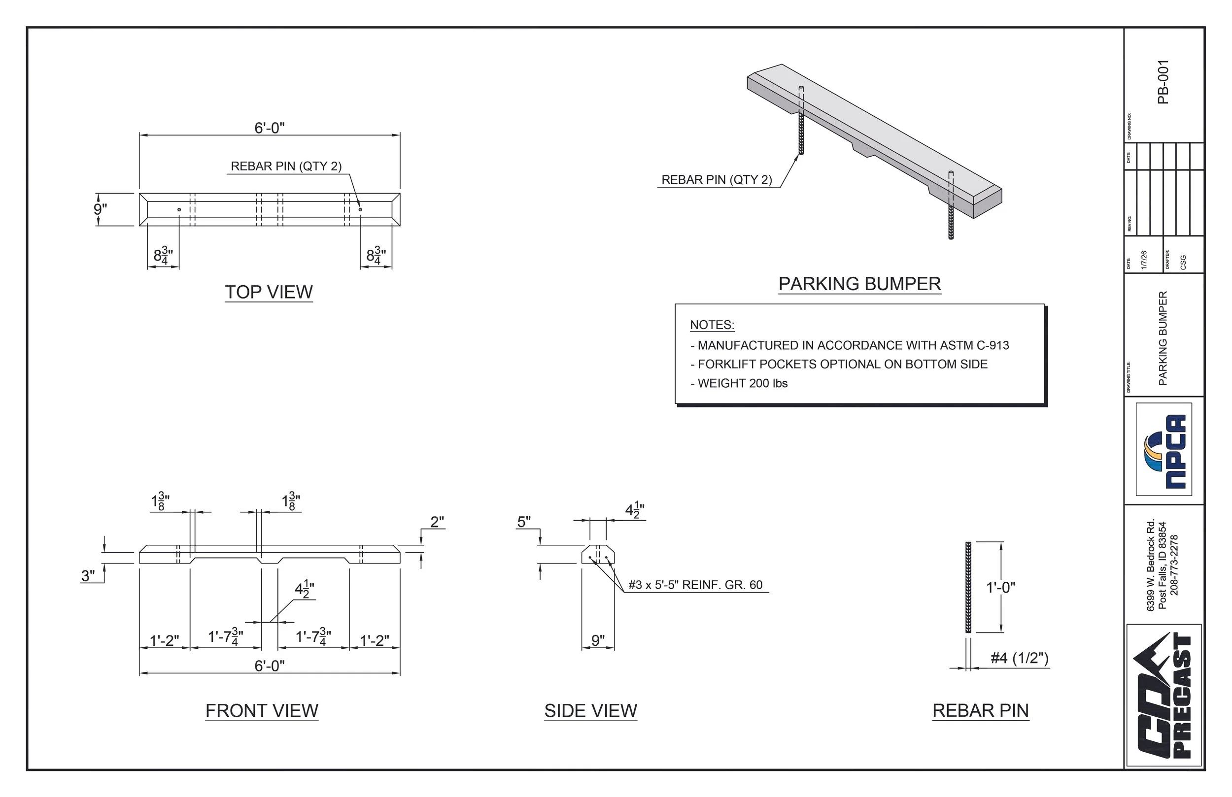 Our miscellaneous precast products provide versatile, durable solutions for a wide variety of construction and infrastructure needs. From parking bumpers and dock anchors to thrust blocks, meter vaults, and other custom precast items, each product is manufactured from high-strength concrete to ensure long-lasting performance, structural integrity, and consistent quality. Precast construction allows for faster installation, reduced on-site labor, and precise dimensions compared to traditional cast-in-place methods.