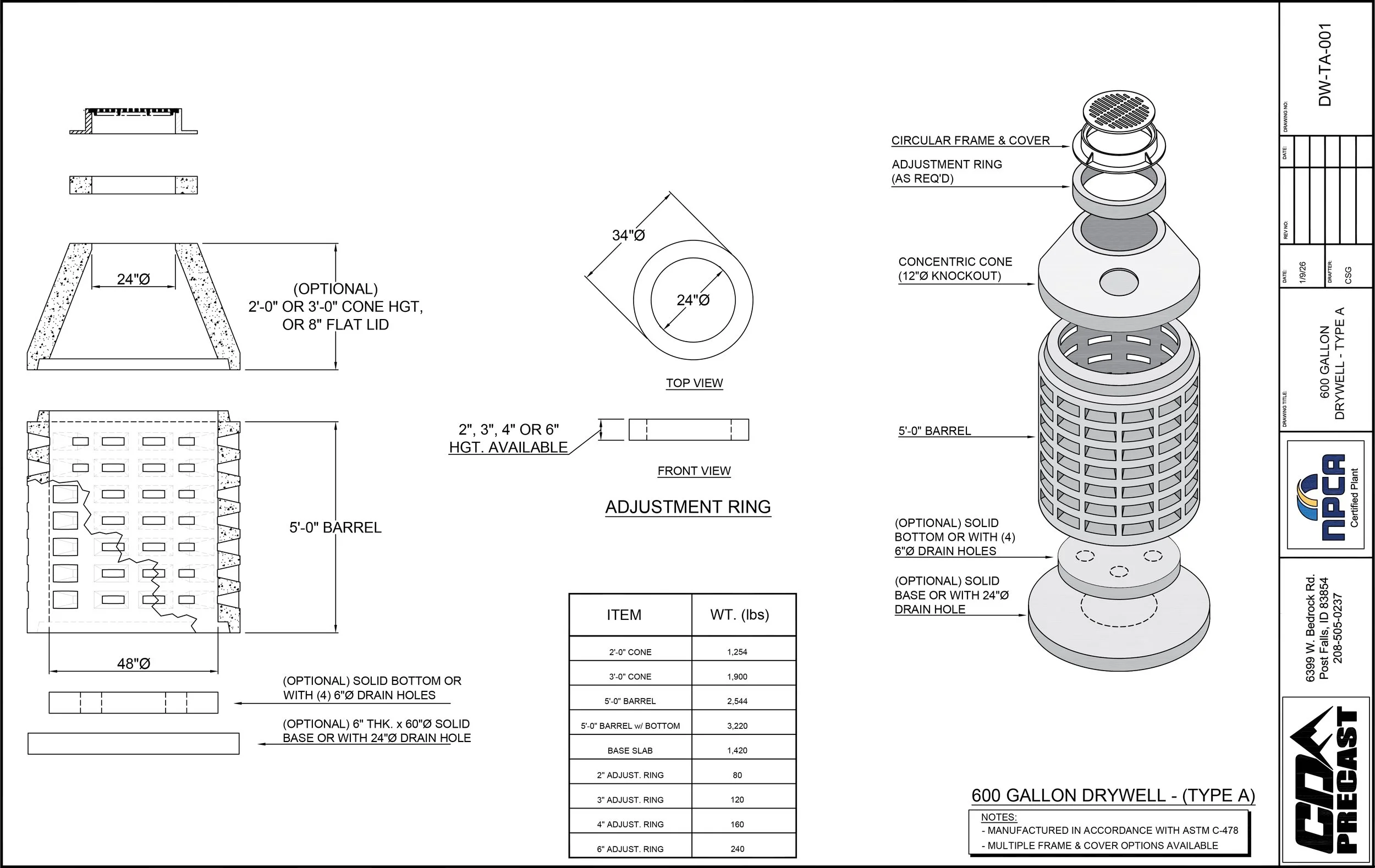 600 GALLON DRYWELL - TYPE A