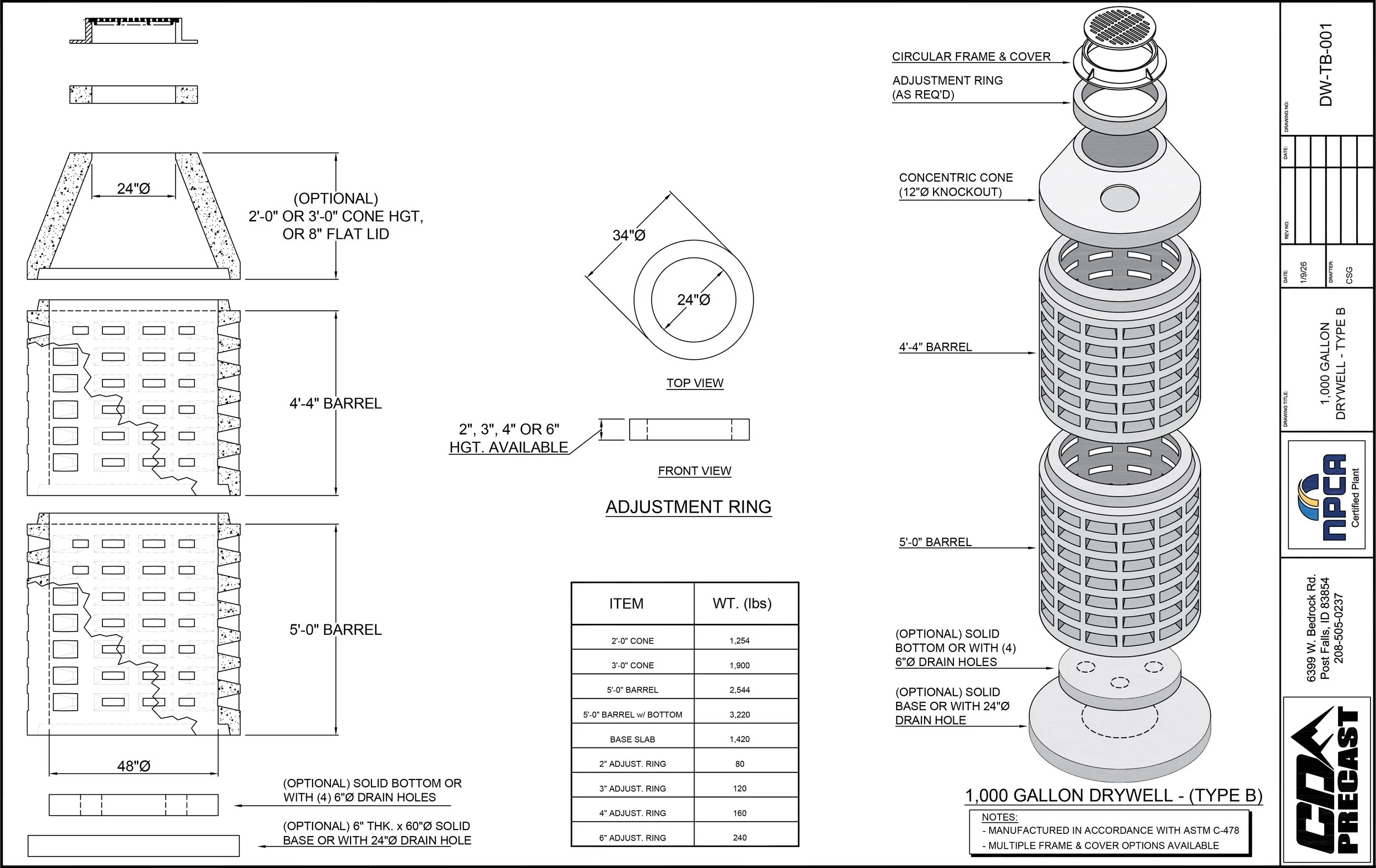 1,000 GALLON DRYWELL - TYPE B