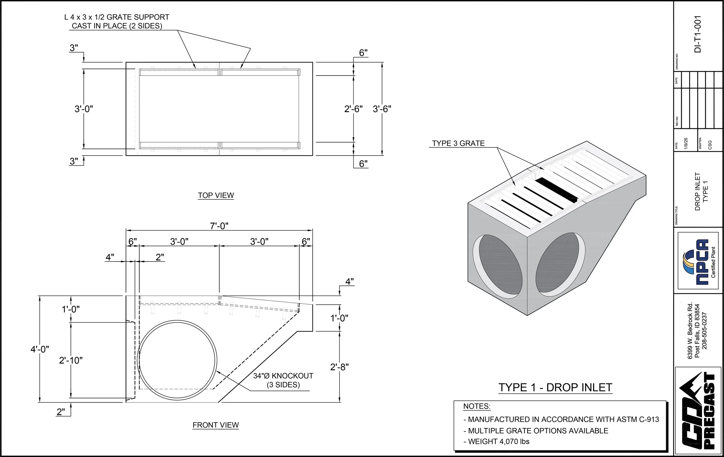 TYPE 1 - DROP INLET