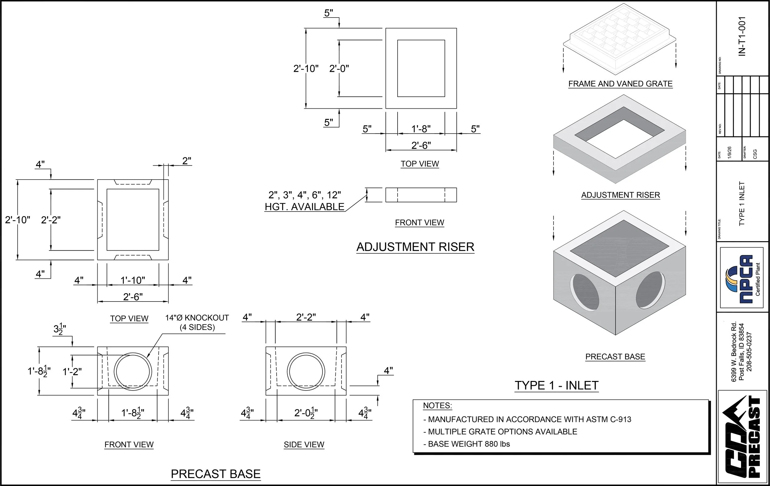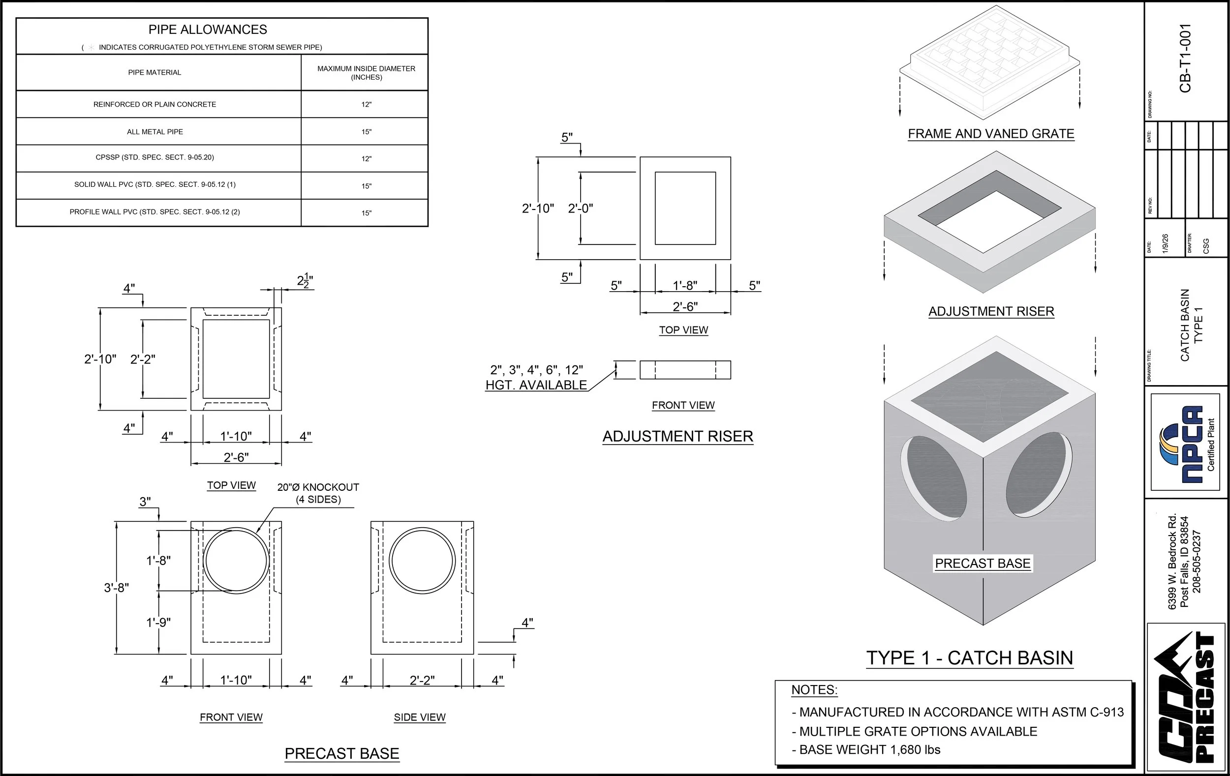 TYPE 1 - CATCH BASIN