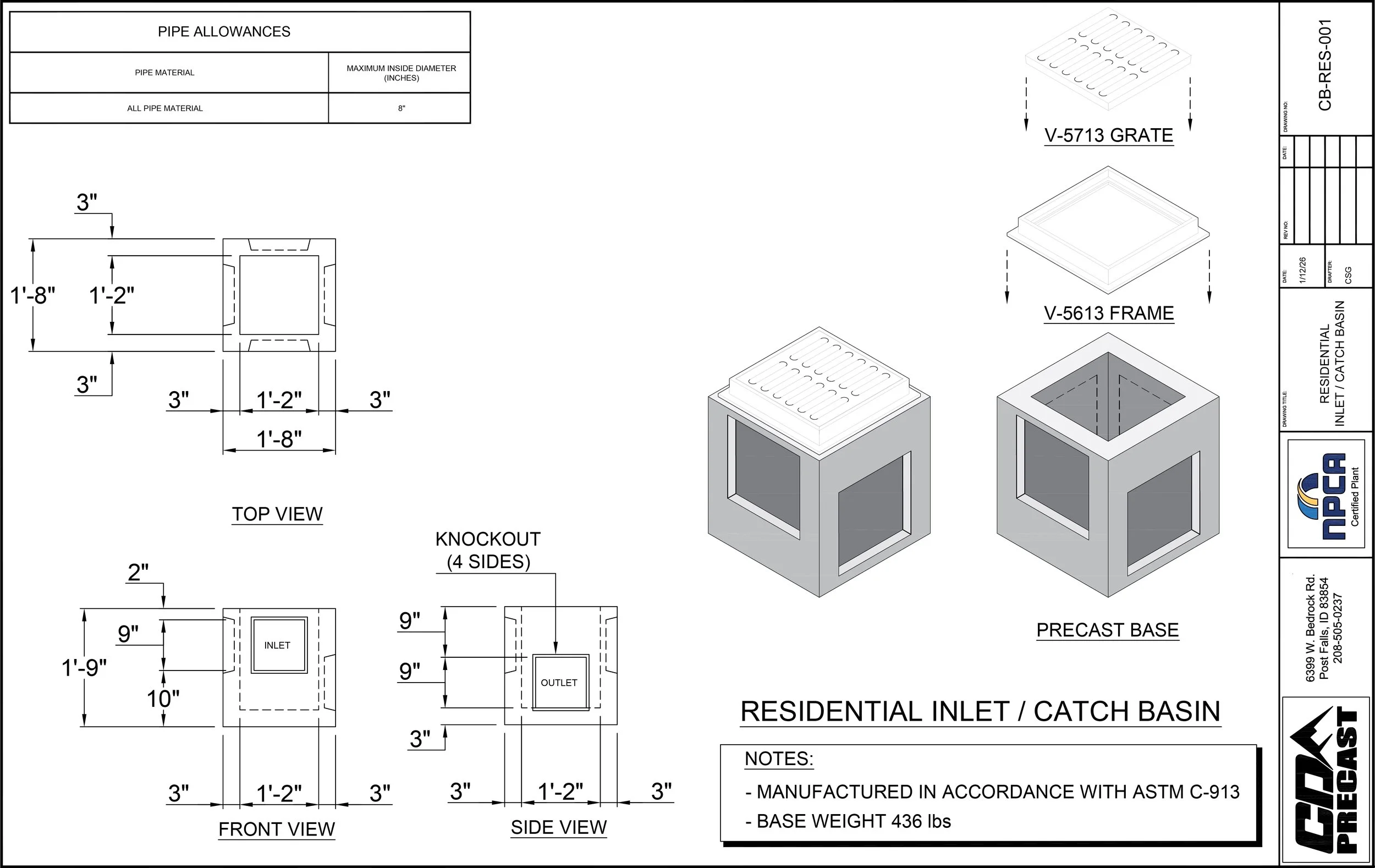 RESIDENTIAL INLET / CATCH BASIN